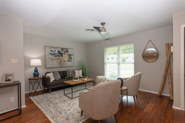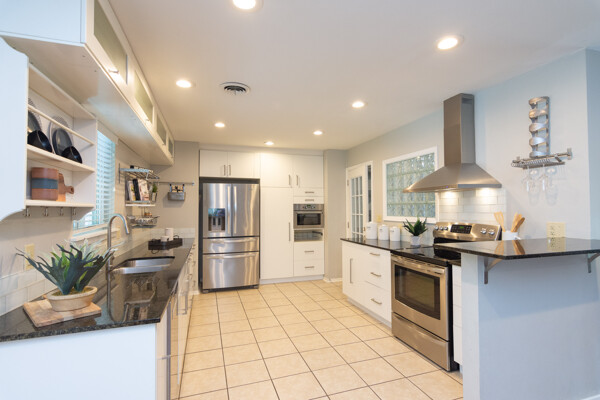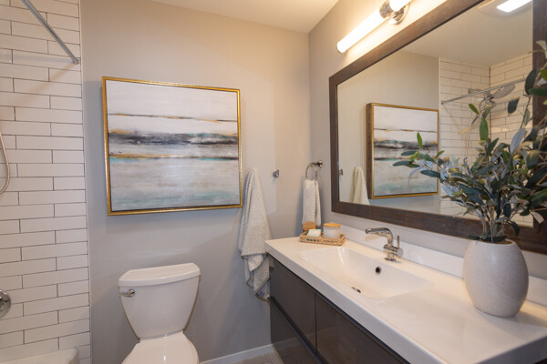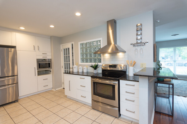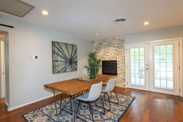 All bathrooms were renovated in 2020 with free standing cabinets and framed mirrors. The showers boast designer-grade tile inlays. The living area is accented with a fireplace built into a wall of tumbled stone, all sitting on beautiful hardwood floors.